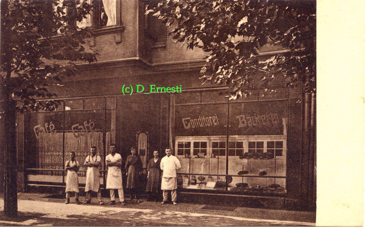 Ansichtskarte um 1930. befand sich in der Ottostraße (Oskar-Hoffmann-Str.), Ecke Kronenstraße. Das Gebäude ist nicht erhalten. Die Ottostraße verläuft hier links im Bild (Straßenbahnschienen) (Karte noch größer sehen - hier klicken!) |