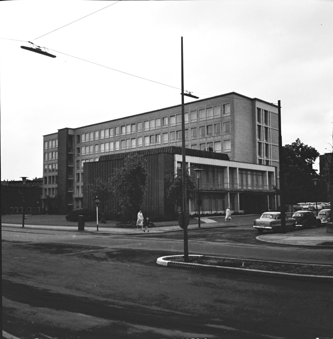 (Aufnahme aus 1962) Gesehen von der Ecke Christstr./Königsallee. Heute ist in diesem Gebäude (das inzwischen unter Denkmalschutz steht) das Finanzamt Bochum-Süd. (Foto noch größer sehen - klicken!) |